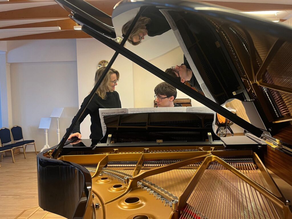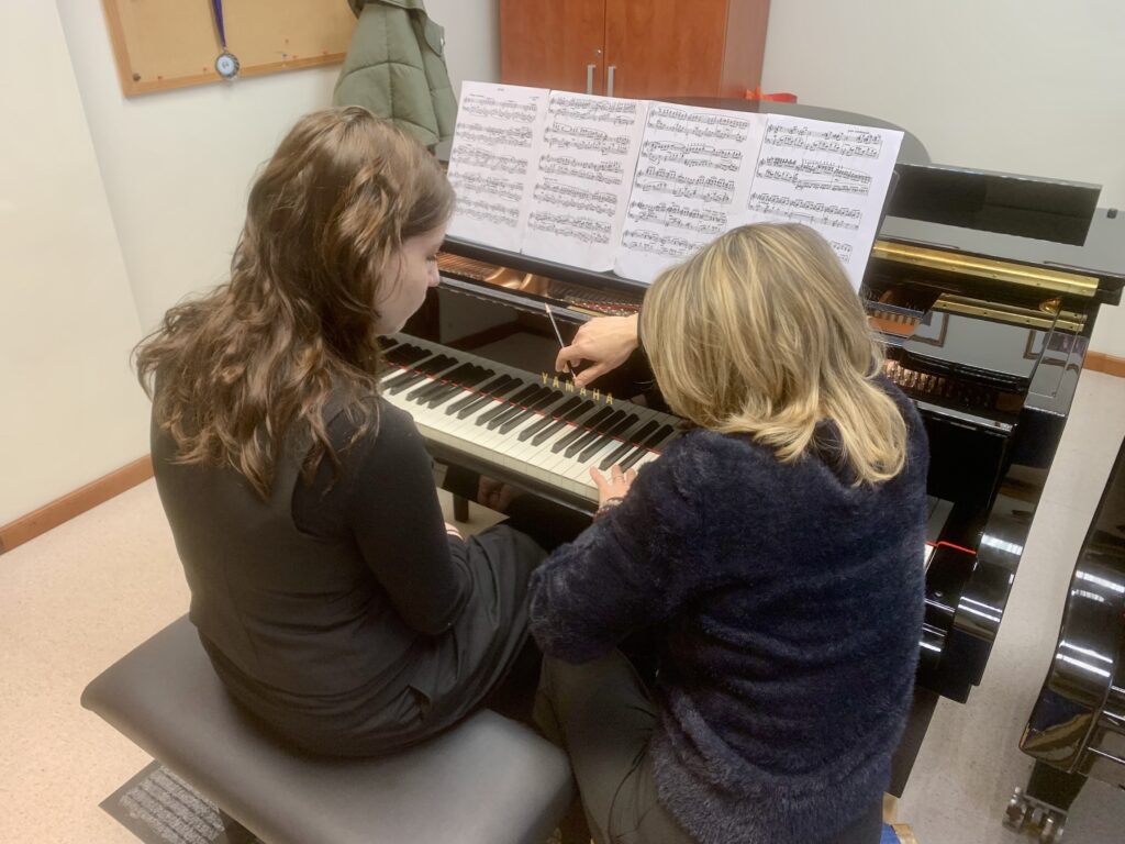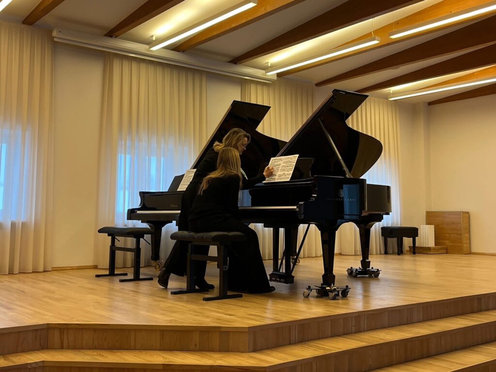 Pirmąją vizito dieną mokykloje atlikome fortepijoninio dueto rečitalį, kurio metu skambėjo M. K. Čiurlionio simfoninė poema „Miške”, aranžuota Jono Aleknos dviems fortepijonams, ir ispanų kompozitoriaus muzika – M. Infante „Andalūziški šokiai dviems fortepijonams“. Džiaugiamės pakiliu konservatorijos mokytojų koncerto įvertinimu ir gautomis teigiamomis emocijomis po pasirodymo.