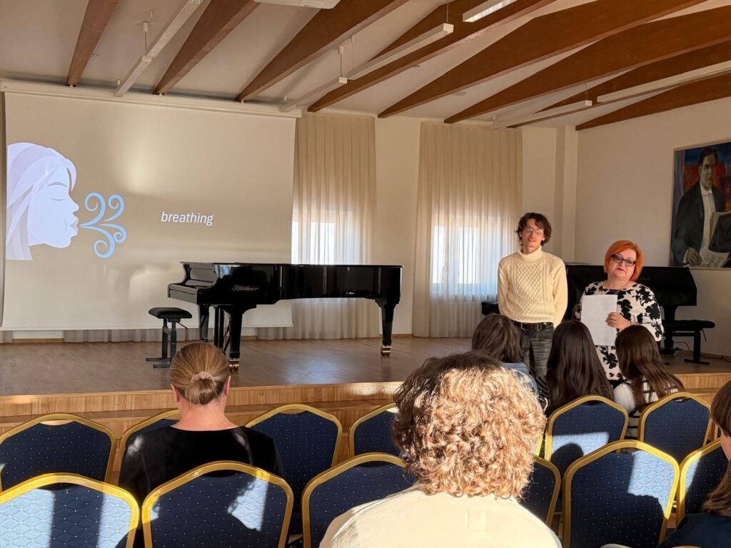 | Erasmus+ projektas 2024-1-LT01-KA121-SCH-00022058 Lapkričio 22–23 d. Konservatorijoje vyko įspūdingi Erasmus+ projekto 2024-1-LT01-KA121-SCH-00022058 dalyvio dainavimo meistriškumo kursai „Bel canto stilius ir dainavimo technikos”. Kursus vedė ir dainavimo meistrystės paslaptimis dalinosi žymi dainininkė ir puiki vokalo pedagogė Lilija Deksnytė-Larina (Slovakija). Ji dirba Bratislavos sakralinės muzikos konservatorijoje, todėl mus supažindino su mokyklos tradicijomis bei ugdymo procesu. Kursuose dalyvavo Stasio Šimkaus konservatorijos mokiniai bei jaunieji dainorėliai ir jų mokytojai iš Klaipėdos ir Žemaitijos krašto. Buvo nepaprastai įdomu stebėti entuziastingą lektorės darbą ir besikeičiančius dainininkų veidus, kūno laikyseną ir gražėjantį garso skambesį. Kursus vainikavo bendras dalyvių koncertas. Ši patirtis visiems dalyvavusiems ir stebėjusiems paliko didelį įspūdį ir suteikė naujų idėjų, kaip galima smagiai ir efektingai mokytis dainavimo. Mokytoja Giedrė Zeicaitė |
