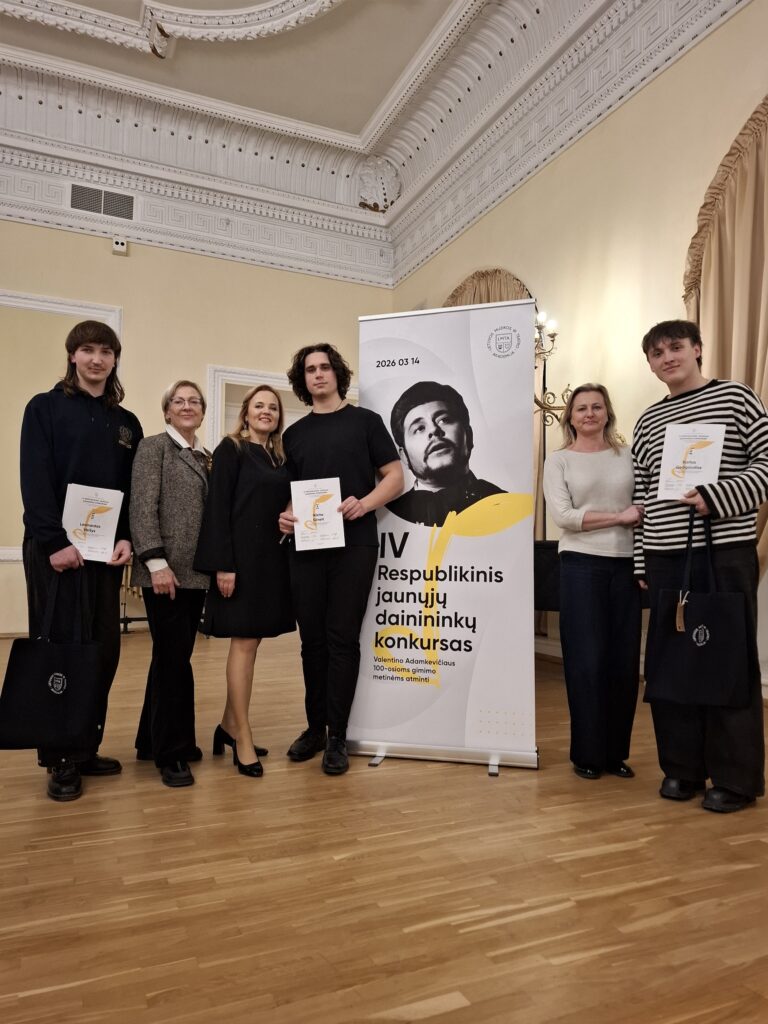 | Kovo 14 d. Vilniuje IV respublikiniame V. Adamkevičiaus vardo konkurse puikiai pasirodė S. Šimkaus konservatorijos dainininkai Nikita Gineit (mok. Giedrė Zeicaitė), Leonardas Vaišys (mok. Rūta Kociutė- Agafonovienė) ir Karlas Gedgaudas (mok. Rasa Kazlauskienė), jie tapo II v. laureatais. Džiaugiamės savo mokinių pasiekimais. Nuoširdžiai dėkojame koncertmeisterėms Audronei Urbutytei, Gitanai Masiulienei ir Giedrei Muralytei Eriksonei. Giedrė Zeicaitė |