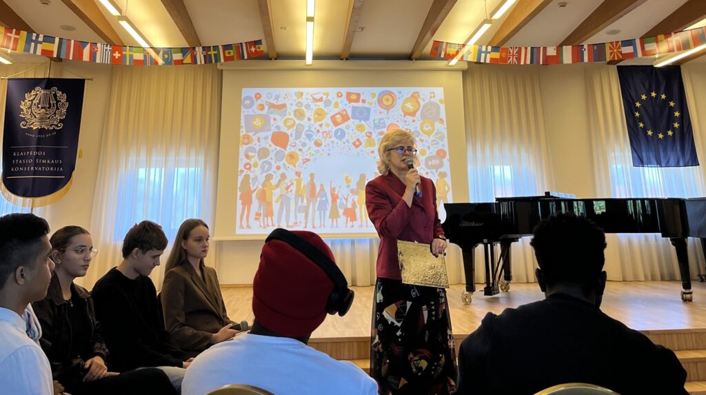 Rugsėjo 26 d. Europoje švenčiant kasmetinę, šiemet jau 25-ąją, Europos kalbų dieną, Klaipėdos Stasio Šimkaus konservatorijoje ją paminėti susibūrėme drauge su Klaipėdos universiteto studentais ir tarptautiškumo specialistėmis Kristina ir Indre, mokyklos bendruomene bei aktyviaisiais jaunesniaisiais ir vyresniaisiais Konservatorijos ambasadoriais.