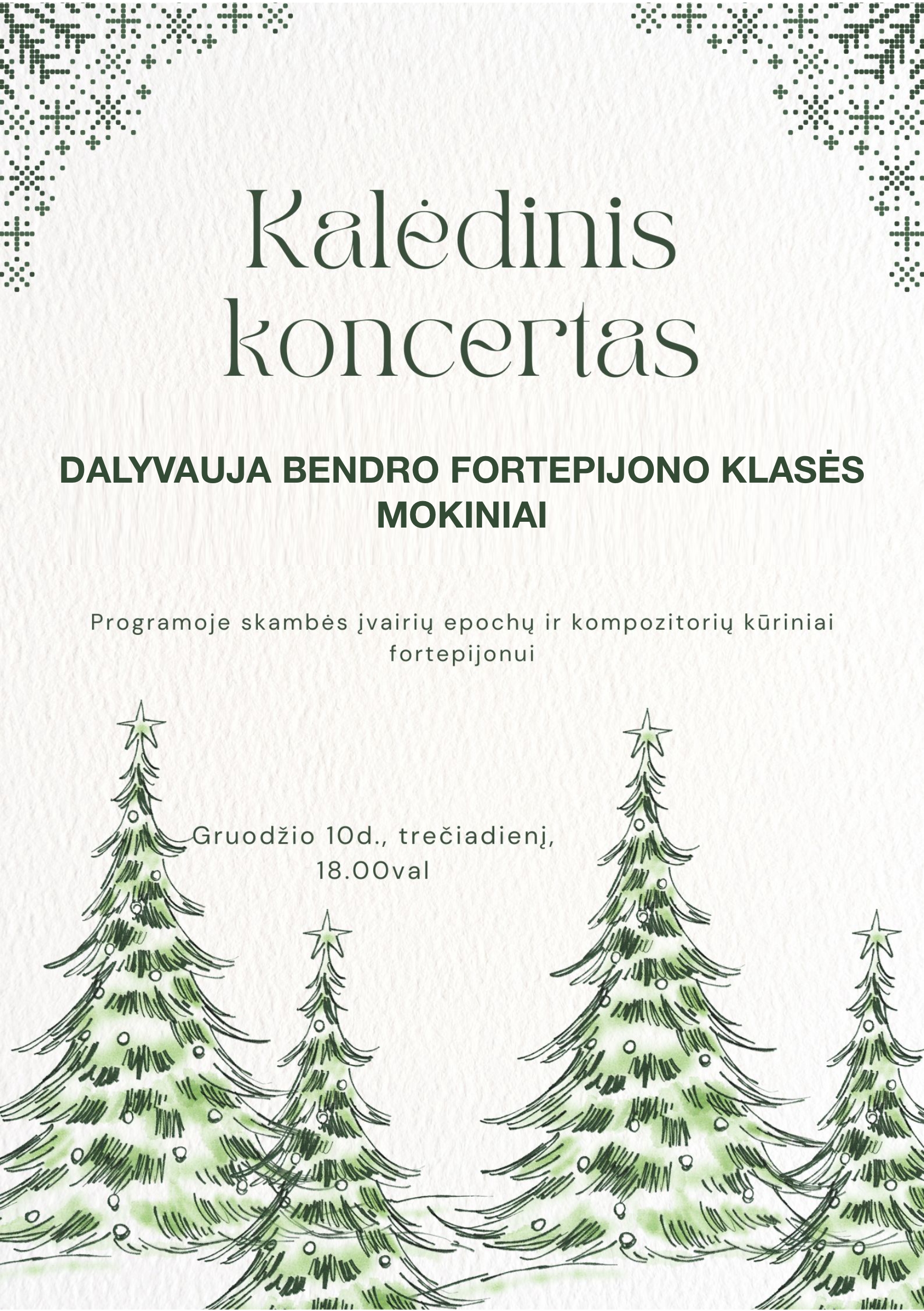 Gruodžio 14-tą dieną Bendrojo fortepijono skyriaus mokiniai muzikos garsais paseks Kalėdinę pasaką. Kviečiame kartu pasinerti į magišką pasaulį !
